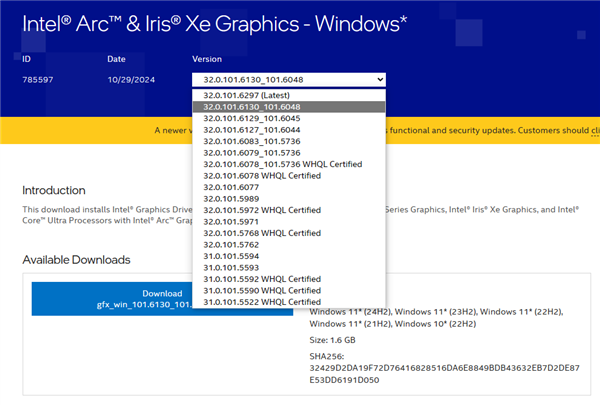 Lunar Lake发布之后,一直到Arrow Lake发布之后,它们的核显都是单独的一个驱动包,和原有驱动直接打包在一起,因此每次驱动更新都有两个不同的版本号。