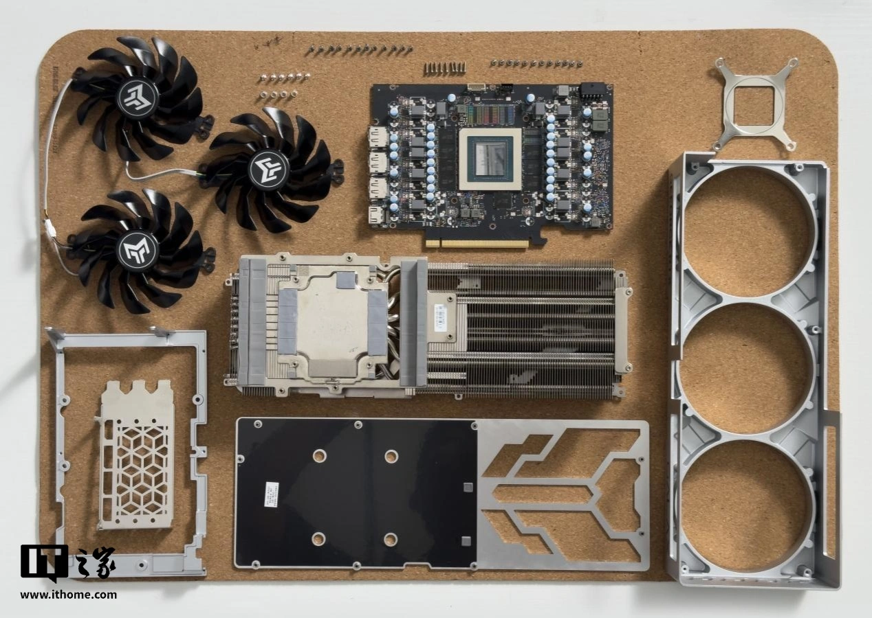 IT之家在性能测试之后对影驰 GeForce RTX 4070Ti SUPER 金属大师 Plus OC 进行了拆解,首先卸下背板上的 9 颗十字长螺丝机,以及挡板上的 6 颗十字短螺丝,拆下背板与挡板。