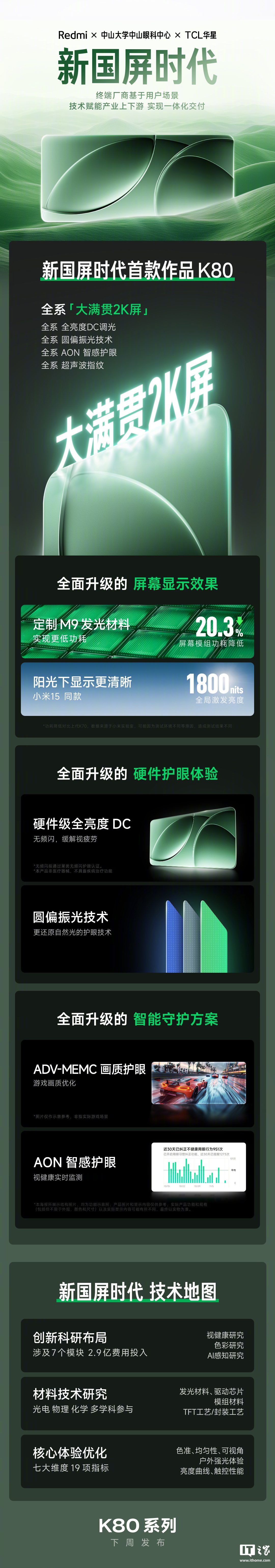 IT之家 11 月 18 日消息,小米 Redmi 联合中山大学中山眼科中心、TCL 华星,在今天下午举行 K80 屏幕技术沟通会。