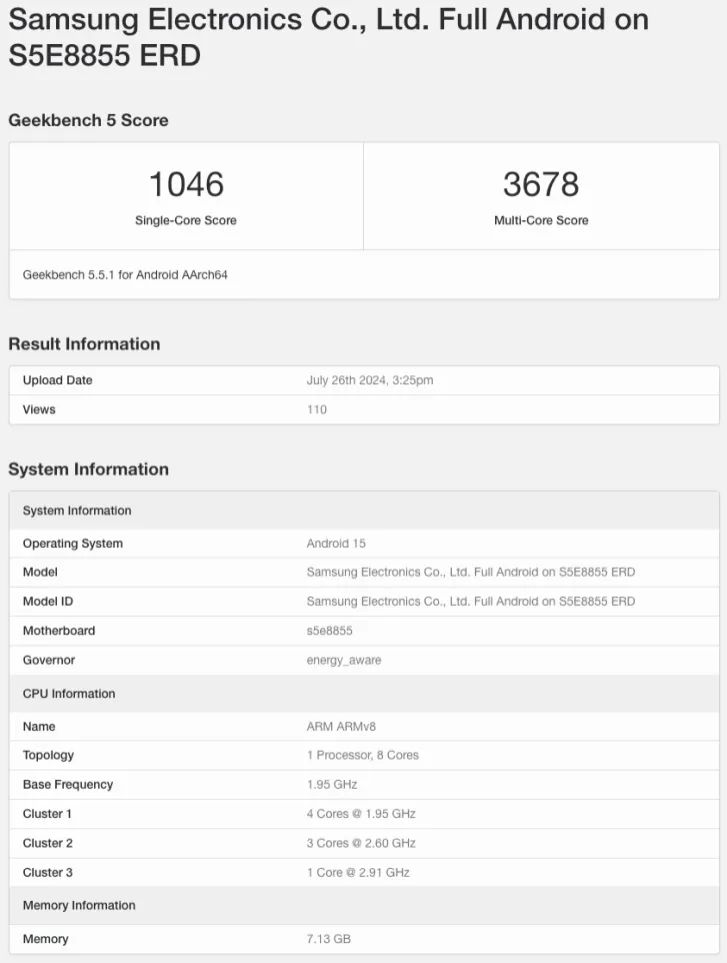 IT之家此前报道,Galaxy A56 将搭载 Exynos 1580 芯片,配备八核 CPU,包含一个主频为 2.9GHz 的 Cortex-A720 核心、三个 2.6GHz 的 Cortex-A720 核心和四个 1.95GHz 的 Cortex-A520 核心。