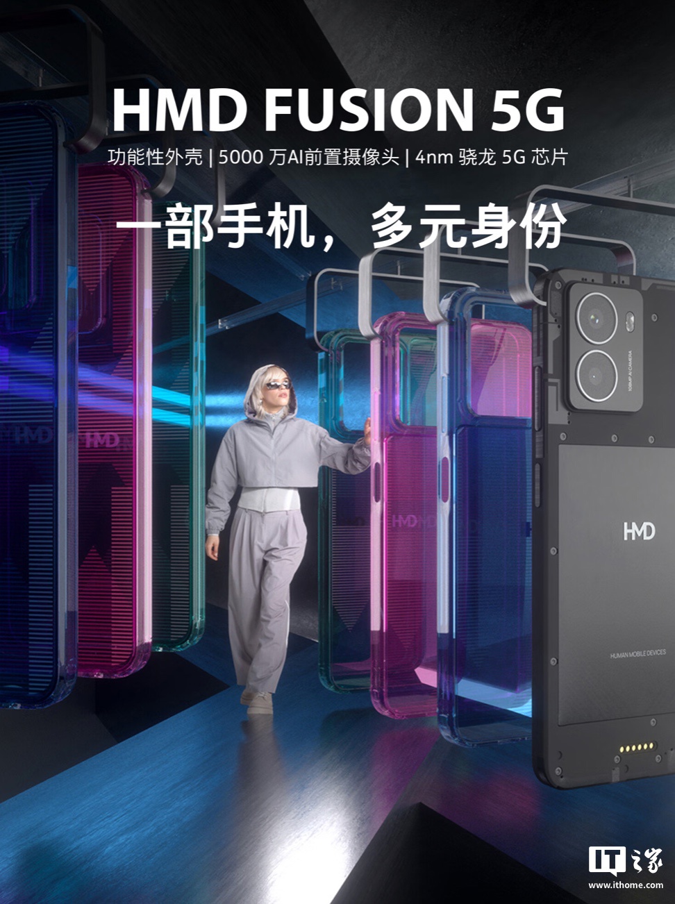 IT之家 11 月 19 日消息,HMD Global 在今年 9 月 6 日推出了 HMD Fusion 手机,用户通过设备背面的 Smart Pin 可以连接各种外壳配件,实现从无线充电到更坚固的保护,或者是用于更明亮自拍和直播的环形灯等各种扩充功能。用户还可以通过开源的 HMD Fusion 开发工具包,3D 打印出自己的设计。
