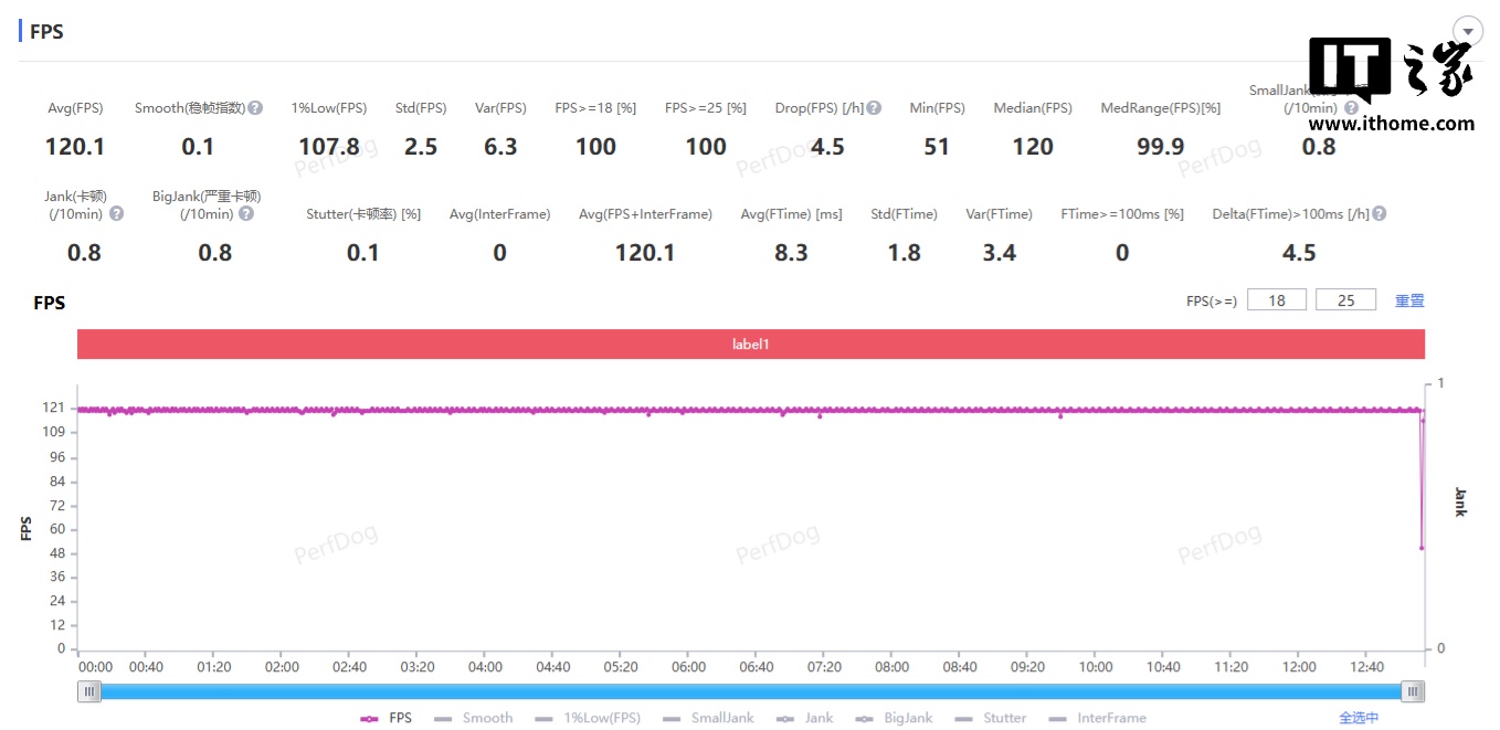 接下来进入游戏实测环节,ROG 9 Pro 的智控中心内提供了 3 档性能模式选择,分别是 X 模式、平衡模式和超长续航模式。像《王者荣耀》这样对性能要求不是很高的游戏,IT之家尝试在平衡模式下玩两局匹配,并选择 120 帧 + 最高画质,游戏时长加起来大概有 26 分钟,使用性能狗进行测试记录,果然两局游戏的平均帧数都稳定在 120 帧,游戏平均功耗 3.5W,对 ROG 9 Pro 来说小菜一碟。
