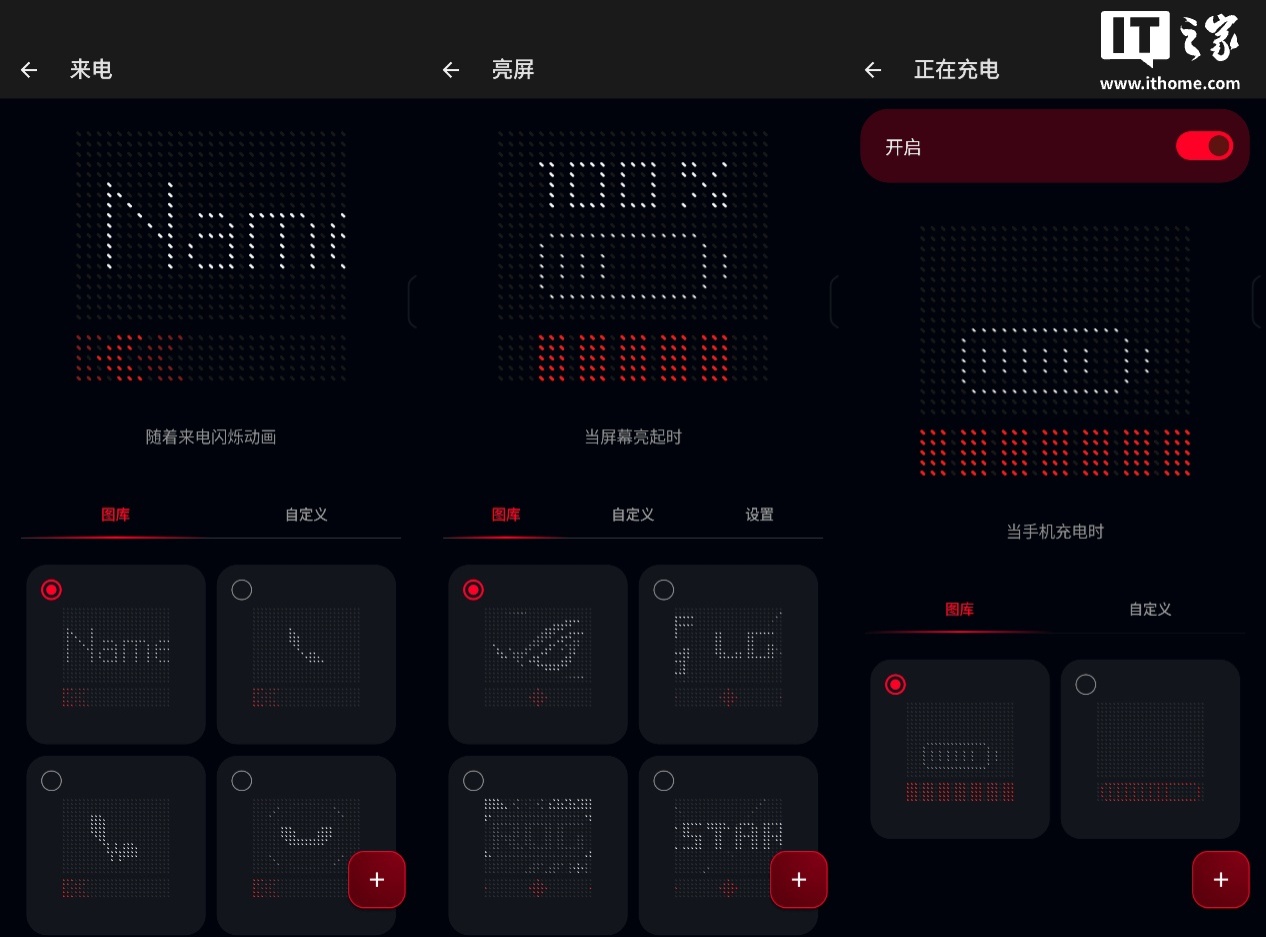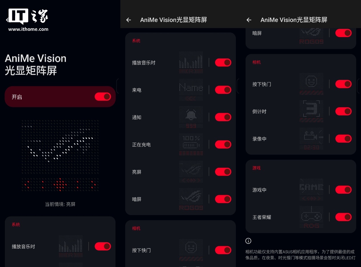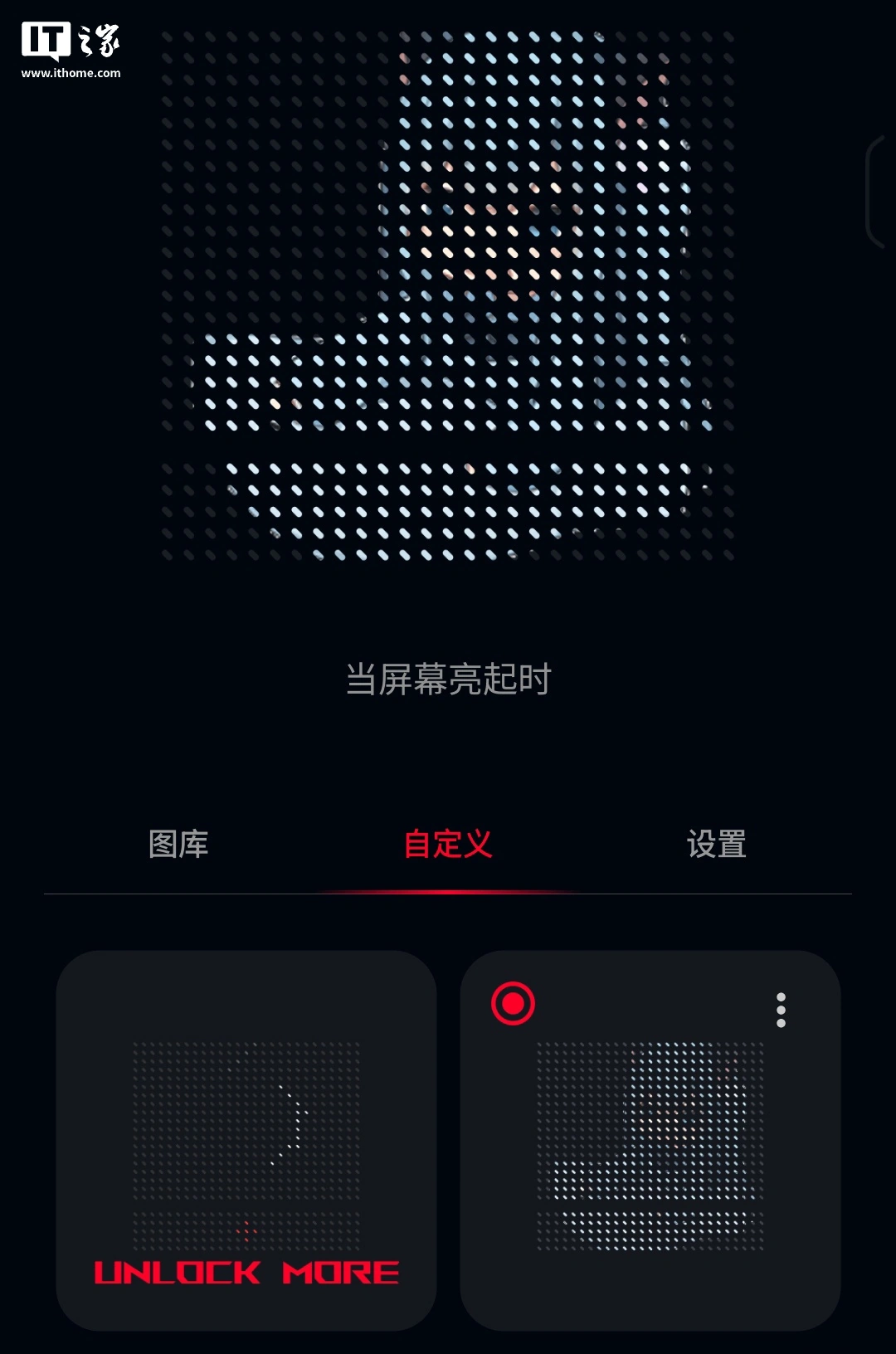 去年 ROG 8 Pro 的那块光显矩阵屏可以在智控中心设置不同场景下的专属动画,如来电、通知、充电、游戏,音乐律动,拍照录视频等等,今年也不例外。