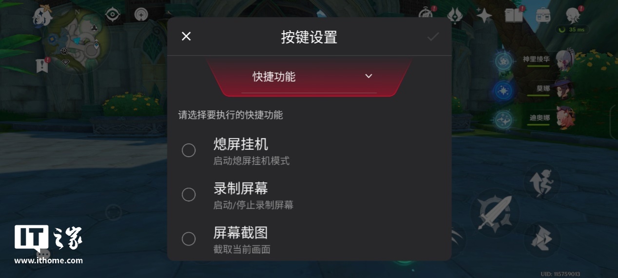 还有快捷操控功能,玩家可以定制一些快捷功能按钮在游戏界面上,随按随用,比如录制屏幕 / 屏幕截图。