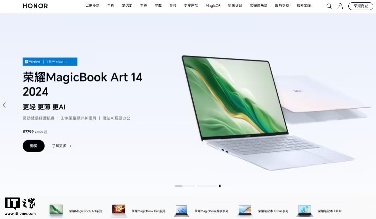 目前荣耀笔记本在售品类包括 MagicBook Art 系列、MagicBook Pro 系列、MagicBook 数字系列、荣耀笔记本 X Plus、荣耀笔记本 X 系列。