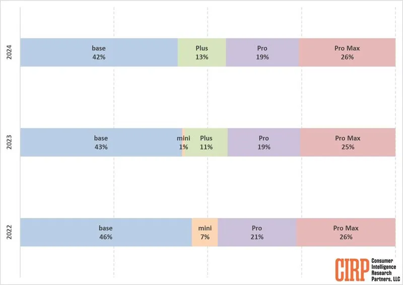 此外,数据显示消费者对更大屏幕的明显偏好,如今 Plus 和 Pro Max 的总销量占比达到了 39%。