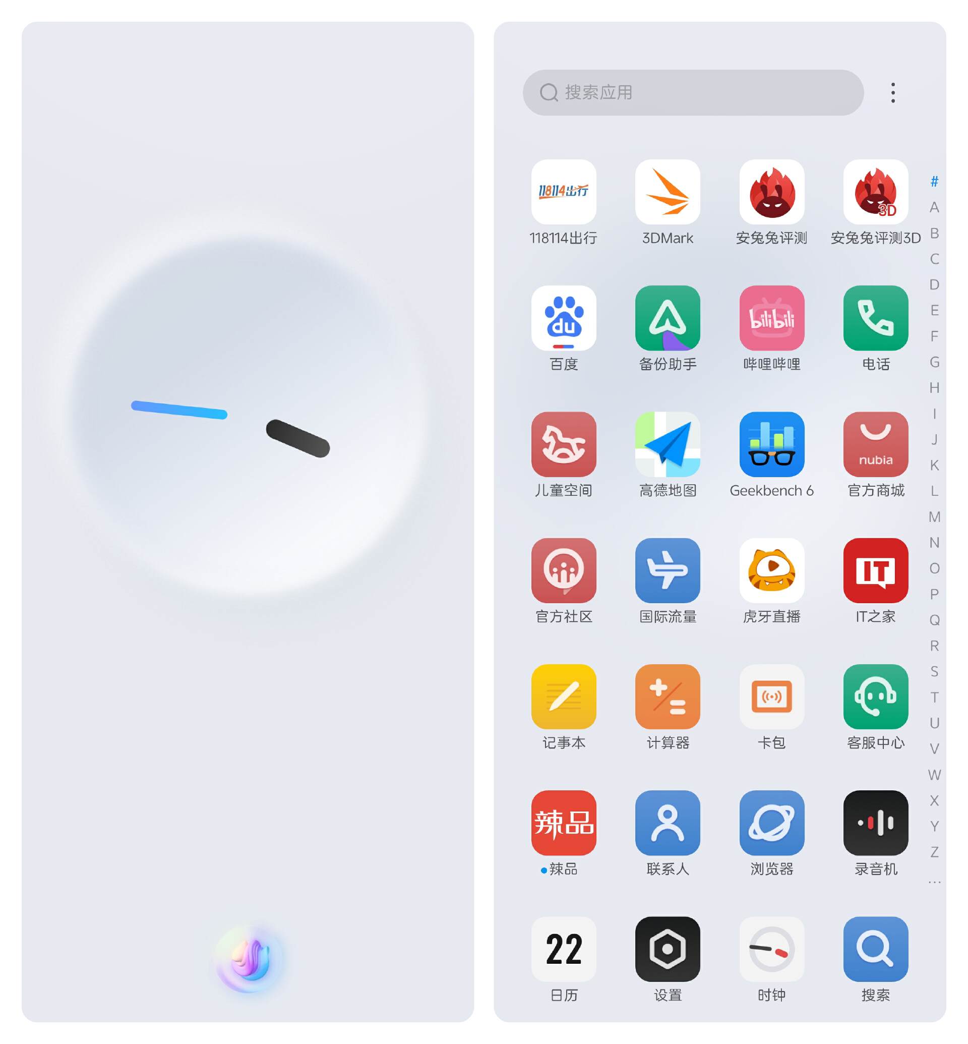 这套全新的系统,带了一个非常激进的交互模式 —— 未来模式,这是一个纯净而清爽的纯语音交互桌面,没有传统桌面的多页面布局,应用全部隐藏在二级抽屉栏里。主界面只有一个语音按钮和简约时钟。