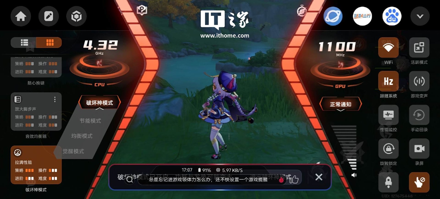 此外,你还可以开启“破坏神模式”,让处理器大核全开,解除所有温控限制,这个模式非常夸张,并不建议普通玩家开启。