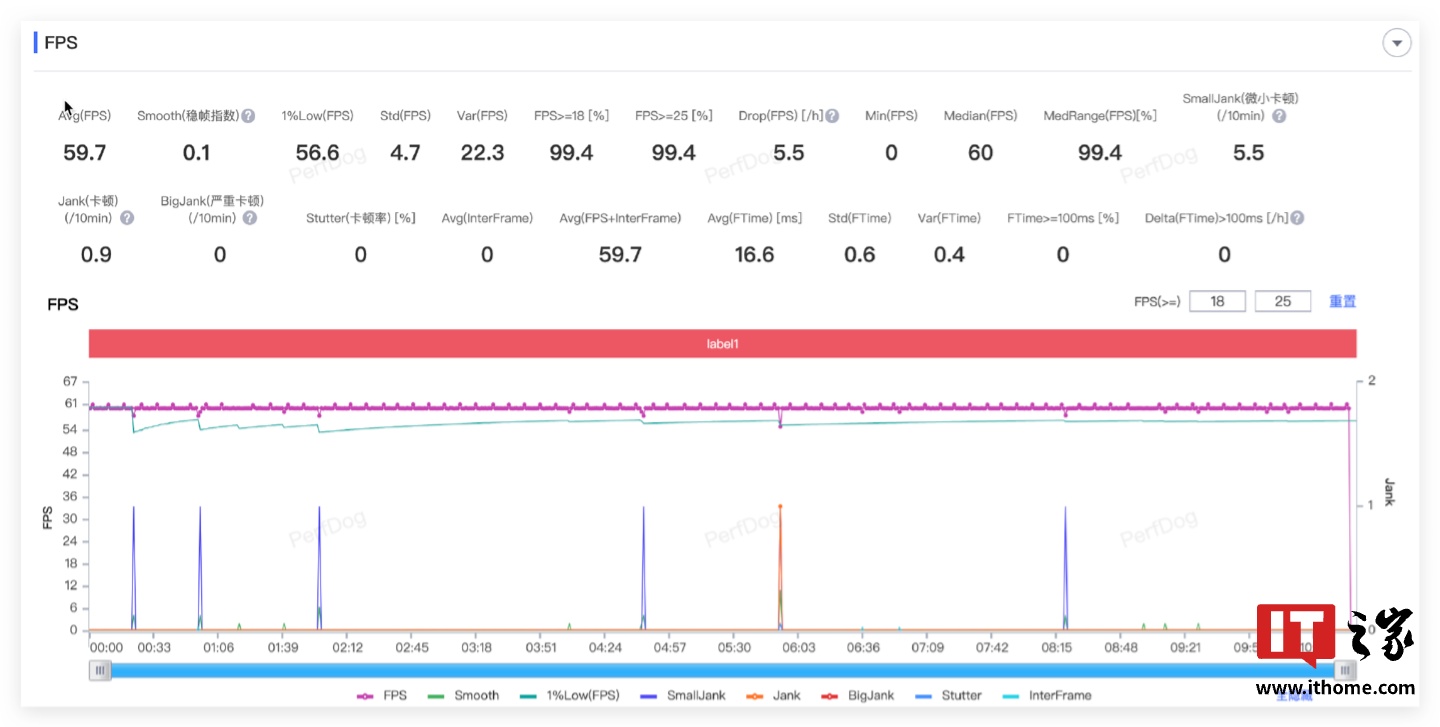 如图所示,努比亚 Z70 Ultra 拿下了 59.7fps 的平均帧率表现,游戏跑图过程中全程稳帧,整体表现非常稳定。