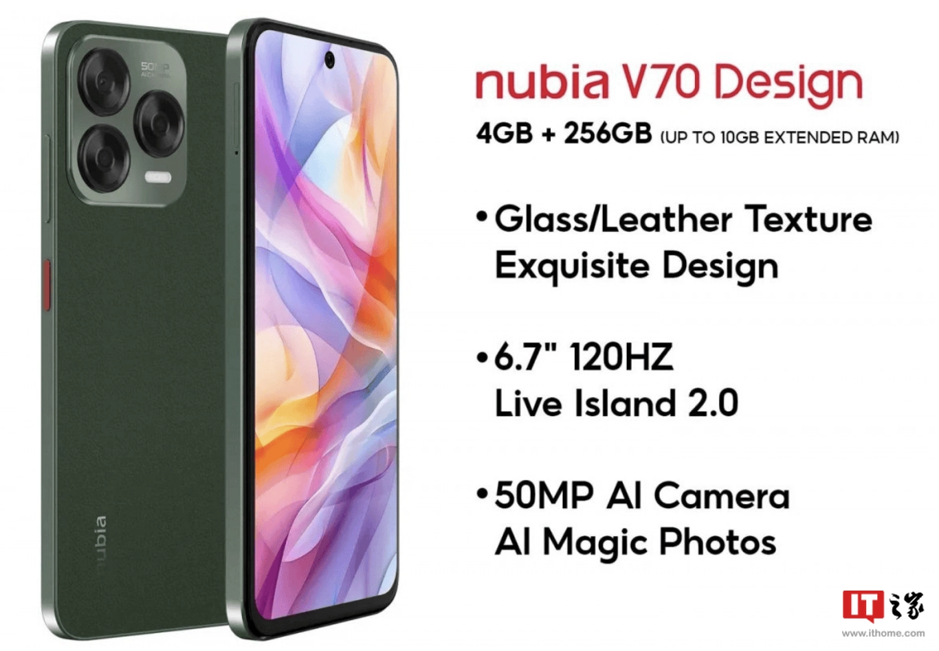 文章来源于互联网:IT之家-中兴海外推出努比亚 V70 Design 手机:可选素皮后盖,搭展锐 T606 + 4G + 256G 售 5300 比索