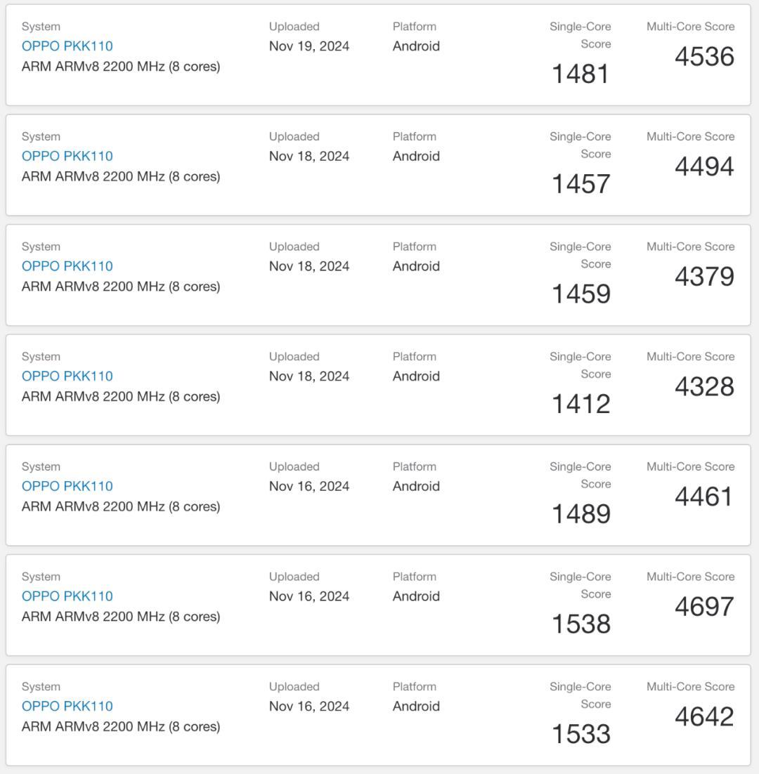 近日OPPO Reno13系列官宣将于11月25日19点发布,据了解将带来Reno13和Reno13 Pro两款新机,现在两款新机均已现身Geekbench跑分库后台,处理器也随之曝光。