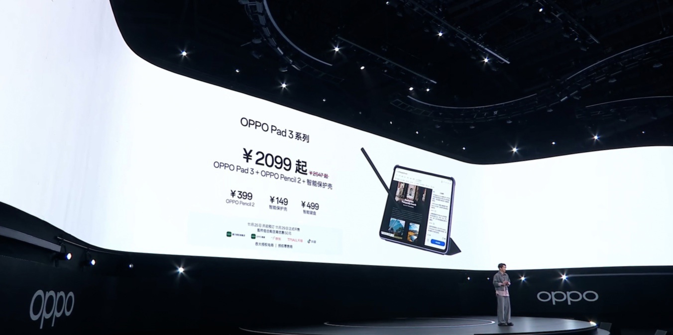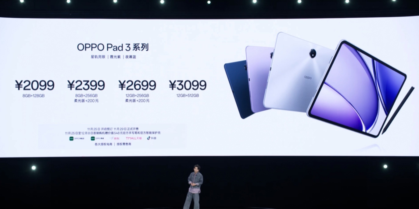 IT之家 11 月 25 日消息,OPPO Pad 3 平板电脑现已正式发布,售价为 2099 元起,IT之家整理价格信息如下: