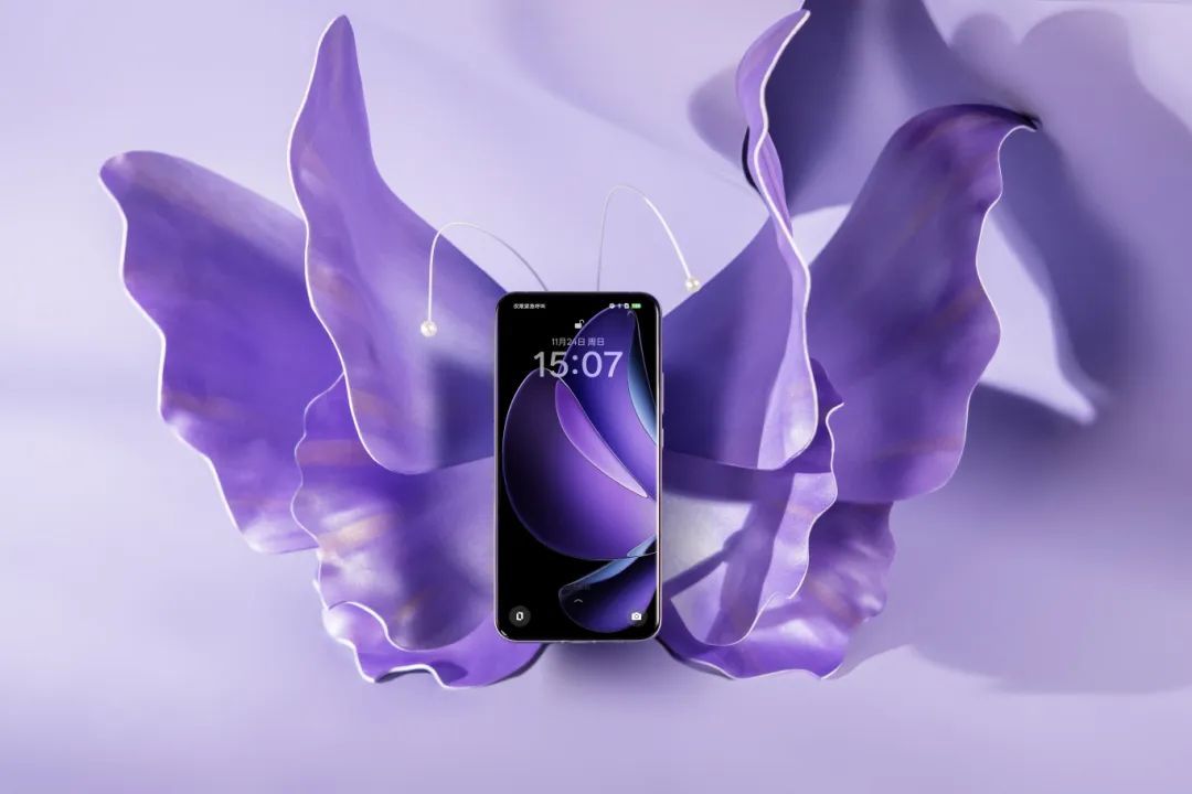 虽然很多人都说全新的Reno13系列是“OPhone”,但从很多设计细节上还是能看出Reno13跟之前的Reno有一定的传承和延续。我们这次拿到的这款蝶蝶紫配色,是Reno13系列的主推色。机身背面的蝴蝶翅膀元素不仅是今年最流行的时尚潮流,也是甜酷风格的 Y2K千禧潮流的重要设计符号。如果你对之前的Reno12系列还有印象,应该会记得Y2K千禧风格正是这款产品在设计上的最大看点。