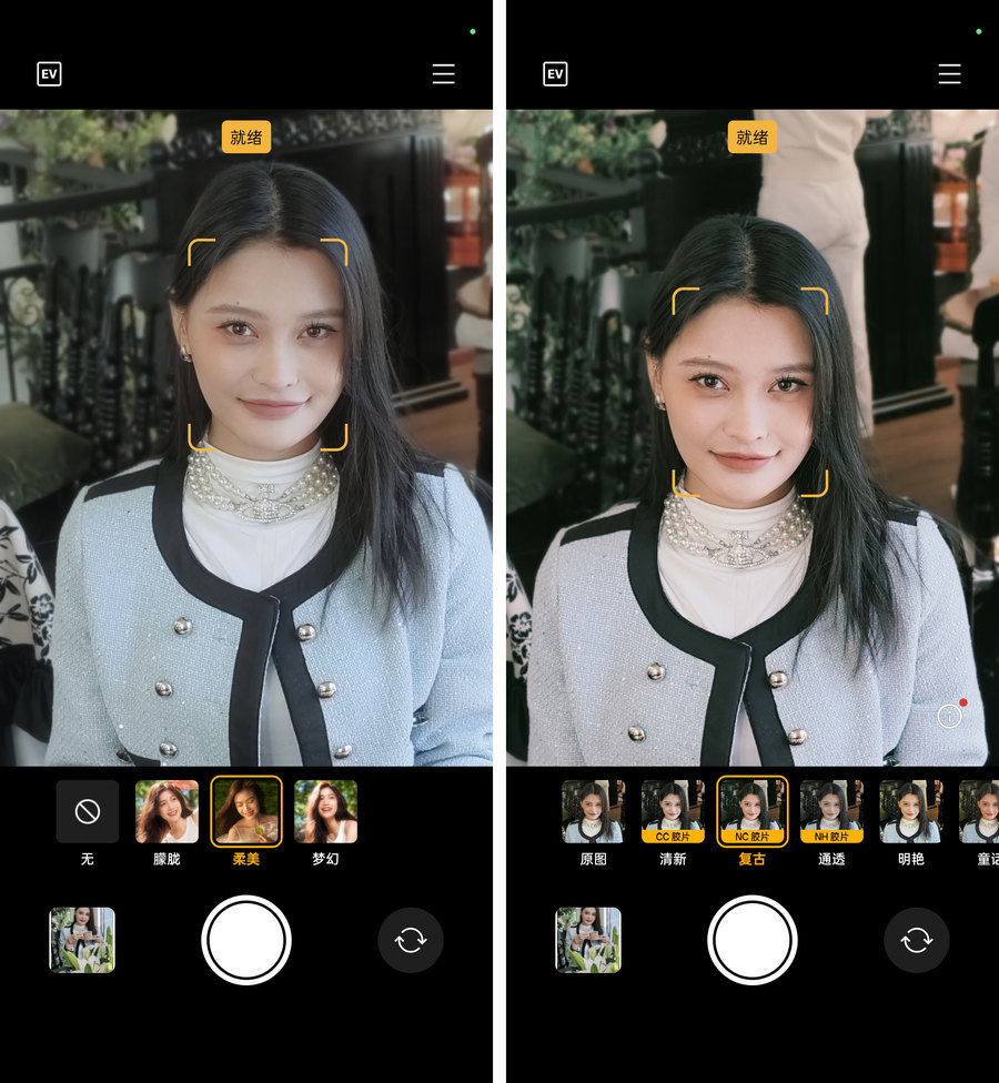 在实际使用中,柔光人像模式能够在拍摄过程中自动为人物增添柔和的光线,使面部轮廓更加立体,肤色也更自然。尤其是在暗光或光线较为复杂的环境中,这种柔光效果不仅能消除硬光带来的阴影,还能让人物肌肤的细腻质感得以保留,避免了过度磨皮带来的失真感。更为人性化的是,这个模式提供了三种不同的柔光效果:柔美、朦胧和梦幻,用户可以根据拍摄场景和需求,轻松调整,以呈现最适合的氛围。