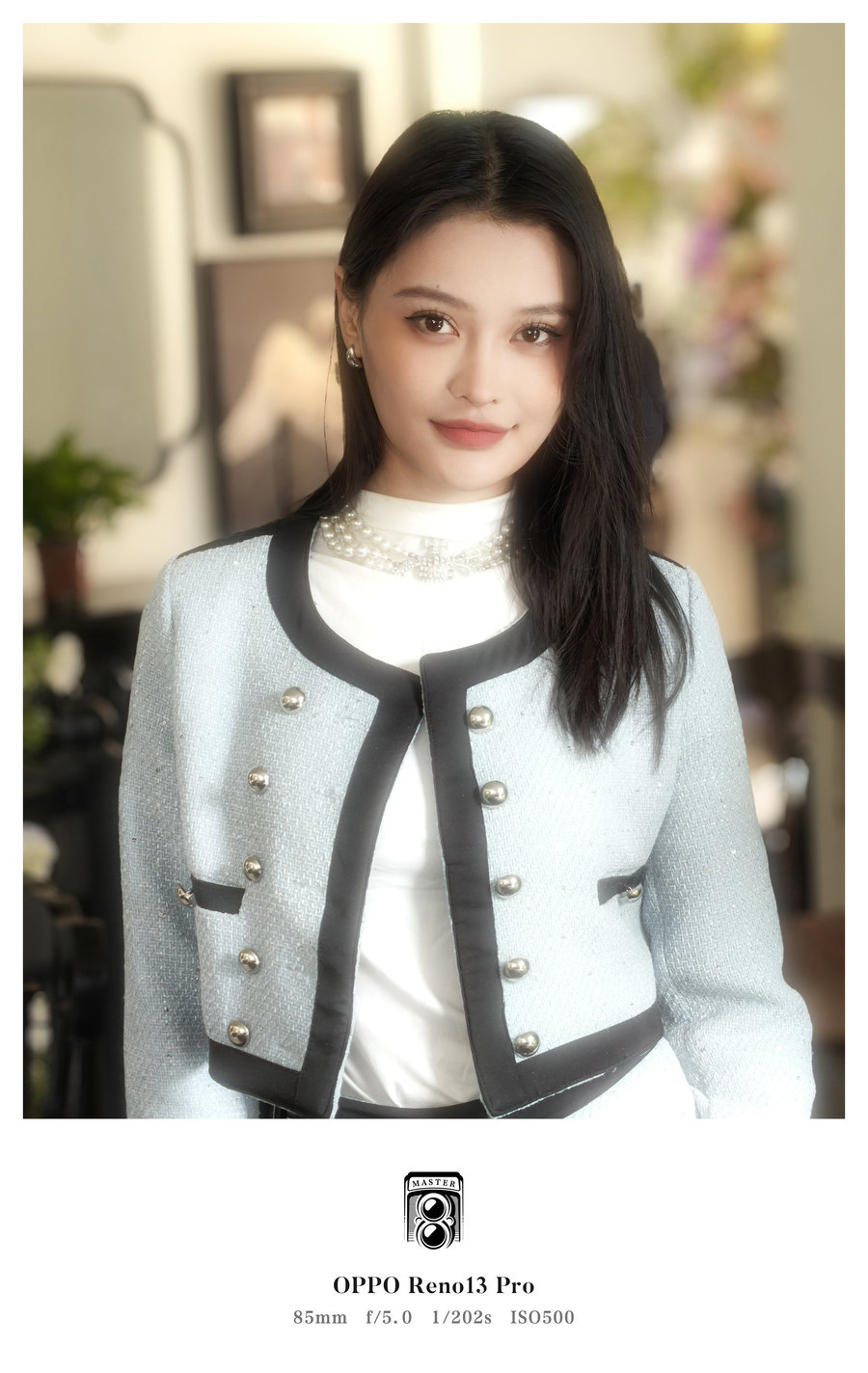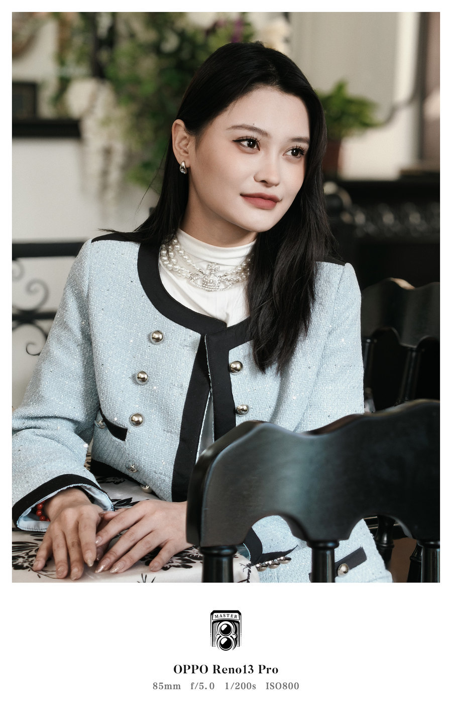 此外,Reno13 Pro还配备了85mm黄金焦段的人像镜头,这个焦距特别适合拍摄半身人像和人物特写,能够实现柔美的背景虚化和清晰的人物焦点。在拍摄过程中,Reno13 Pro精准的虚化效果,让人物与背景的空间关系得到了完 美的呈现,尤其是在拍摄模特的碎发和细节时,边缘处理相当精细,避免了常见的虚化不自然的现象。