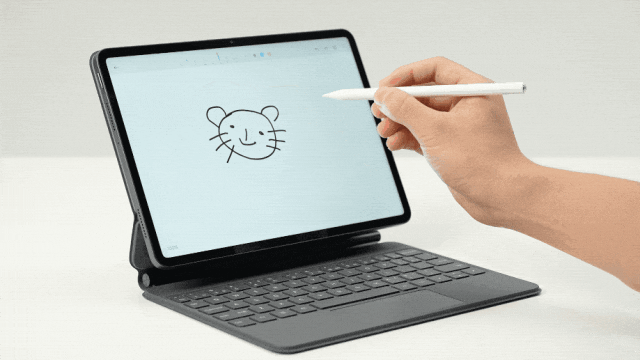 说完了这块键盘,再来讲讲套装里的这支焦点触控笔。与上代焦点触控笔比起来,这代最大的升级在于换了个白色的外观自研笔迹预测算法和低延迟。
