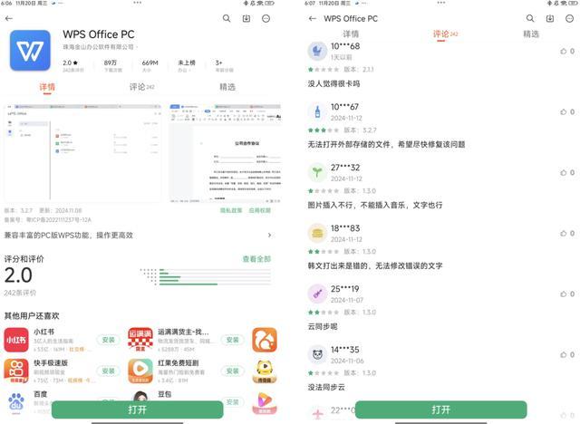 然而。。。这 bug 是真多啊。托尼在使用的时候遇到过好几次 WPS 无法打开文件、 CAJ 闪退之类的问题,一打开应用商店,用户的评论告诉我,原来这并不是个例。