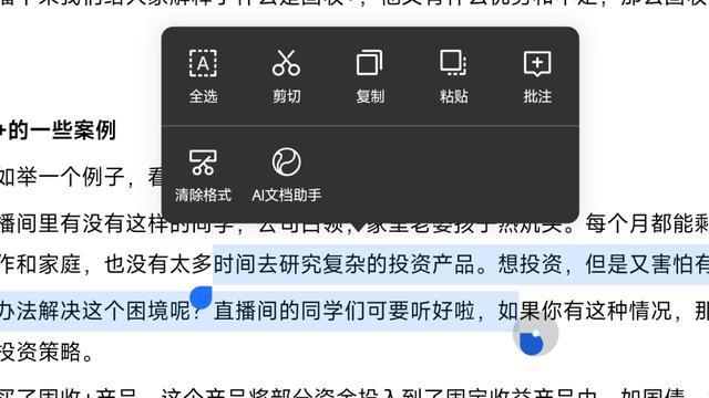 后来托尼又试了试腾讯文档,同样是没法粘贴图片,选定文字后悬浮框没几个功能,最意外的是触控板也不太灵敏了,会出现经常选不中的情况。