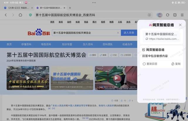 网页总结,经常出一些抽象的问题,包括但不限于 “ 珠海航展 ” 的百科页面被判定有敏感内容。