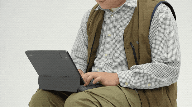 小米这次在发布会上宣传的这些卖点也都没有吹牛,键盘和平板通过触点一吸即连,还能在任意角度悬停,放在腿上也非常稳,甚至还能边码字边抖腿。