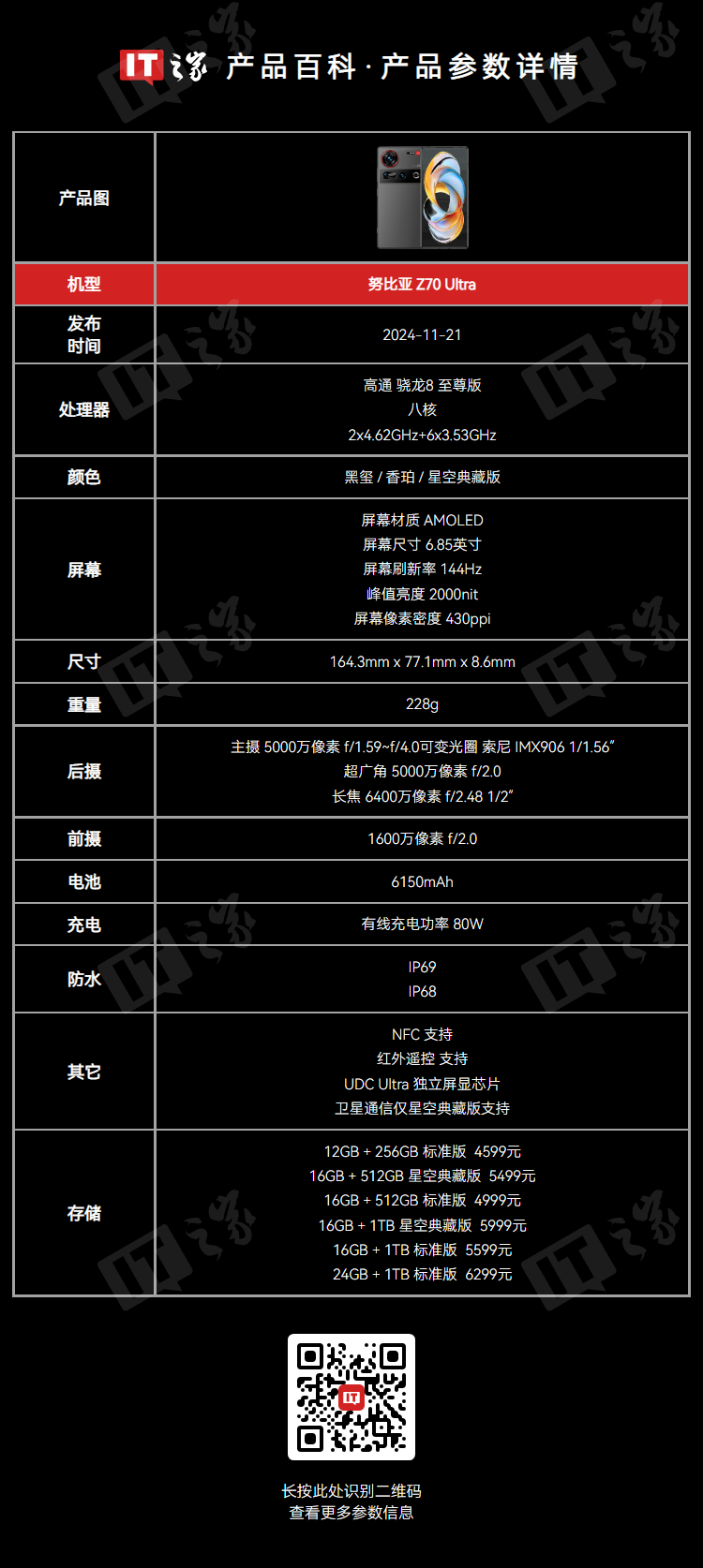 文章来源于互联网:IT之家-努比亚 Z70 Ultra 海外上市,美国市场迎来首款骁龙 8 Elite 处理器手机
