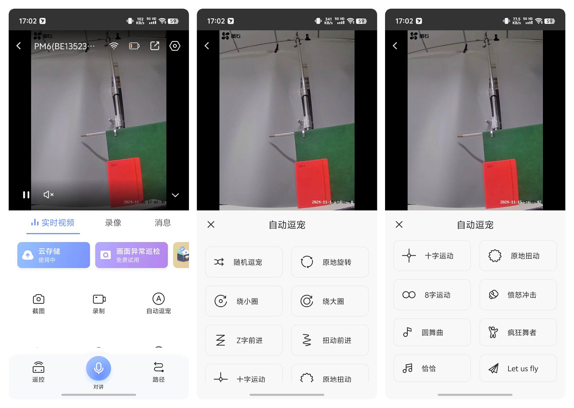 最有意思的是,萤石 TAMO 系统内预设了各种逗宠的动作,比如原地转圈、绕圈、Z 字前行、原地扭动、冲击,甚至还有趣味性十足的跳舞等等。