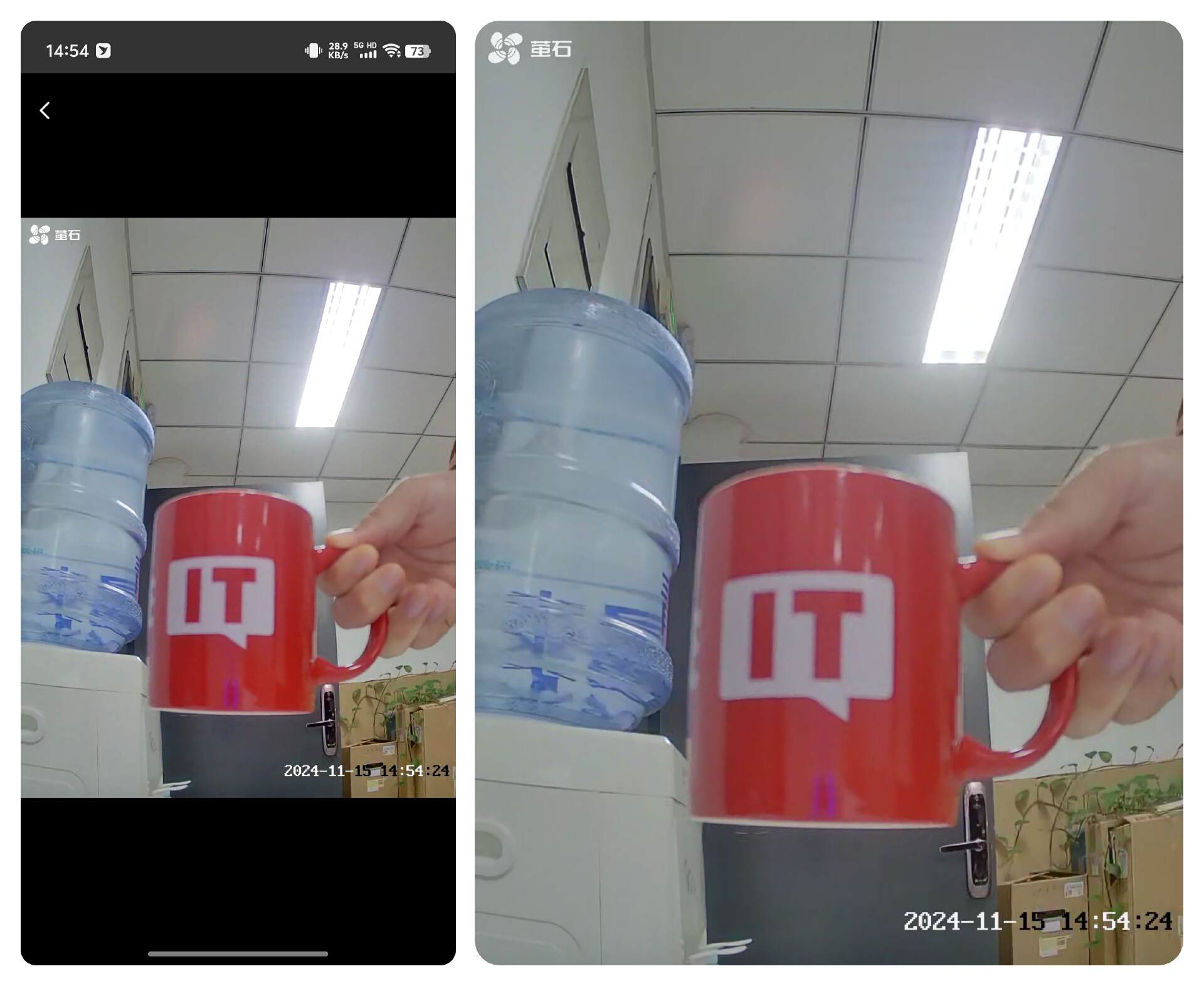 就画质来讲,萤石 TAMO 的 300 万像素够用,如下图所示,笔者截图了晚上室内关灯环境下的照片,在这种伸手不见五指的环境下,萤石字样依旧清晰可见。