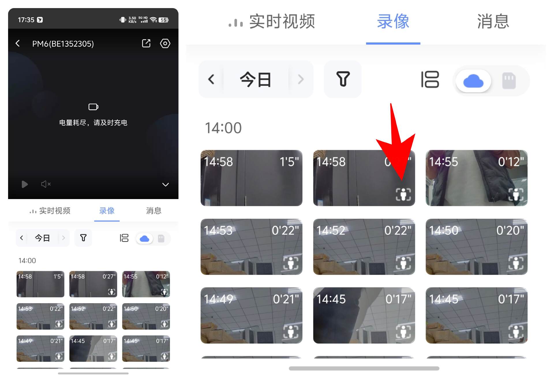 萤石 TAMO 支持人形检测、宠物检测,在录像回看中,如果出现了人物或者是宠物,右下角就会有相应的标识。