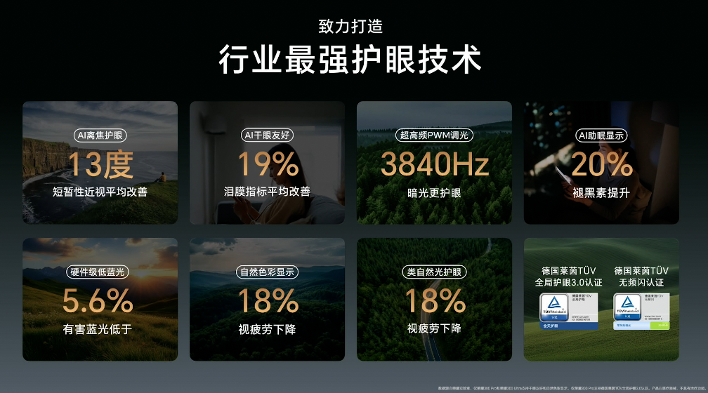 而荣耀 300 Pro 搭载 6.78 英寸 2700×1224 OLED 四曲屏,支持 120Hz 刷新率,3840Hz 高频 PWM 调光,局部峰值亮度 4000nit,支持 10.7 亿色彩显示,支持类自然光护眼、AI 助眠显示、自然色彩显示 2.0、360 度自适应调光技术、干眼友好护眼、安卓首个晕车舒缓显示,支持 HDR Vivid。