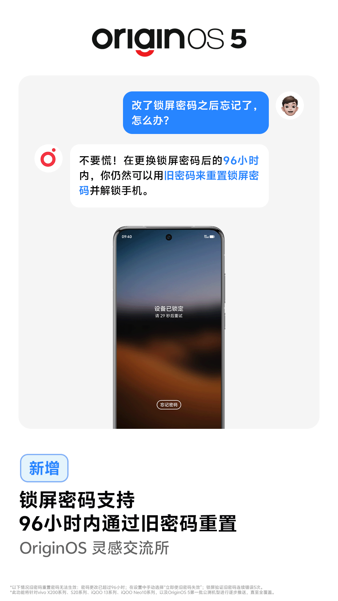 文章来源于互联网:IT之家-vivo OriginOS 5 系统新增“锁屏密码”96 小时内用旧密码重置功能,适配 X200、iQOO 13 系列等机型