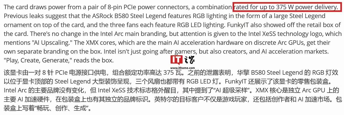 文章来源于互联网:凤凰网-华擎B580显卡细节抢先看:12GB显存、2.5槽厚、XeSS加持,主打AI加速