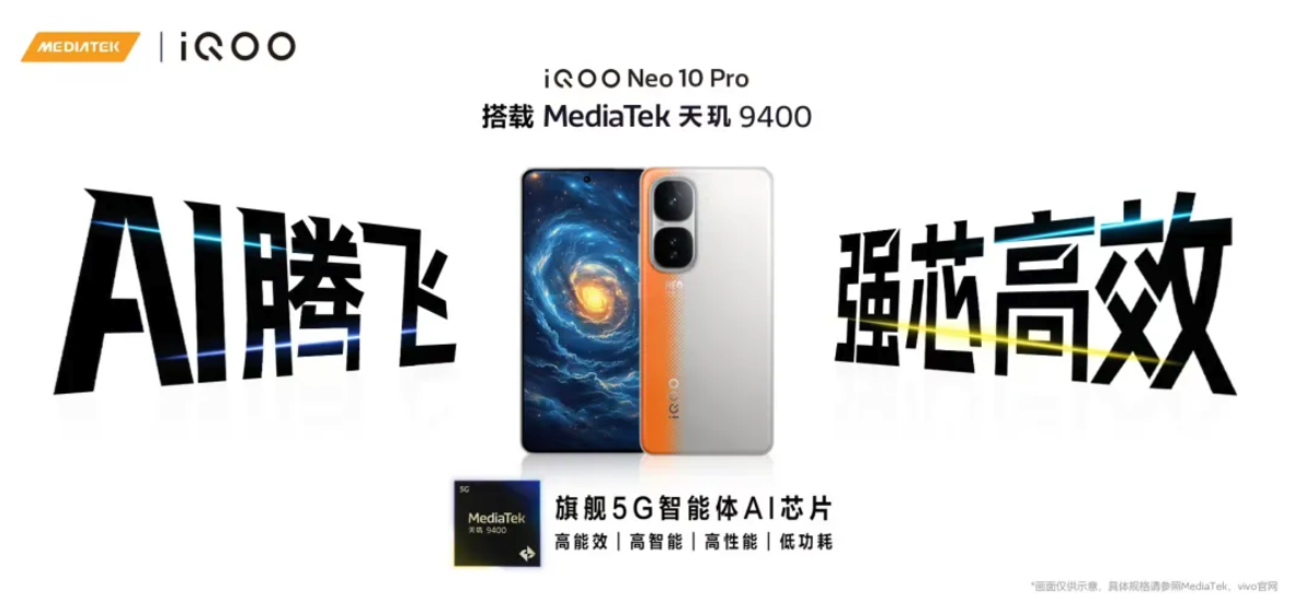 11 月 29 日下午,iQOO Neo10 Pro 手机正式发布,它是继 vivo X200 / Pro、OPPO Find X8 系列后又一款备受关注的天玑 9400 旗舰手机。在全新一代天玑 9400 芯片的加持下,iQOO Neo10 Pro 展现出了强劲的性能表现,配合配合 iQOO 自研电竞芯片 Q2,更是实现了双芯满血进化。