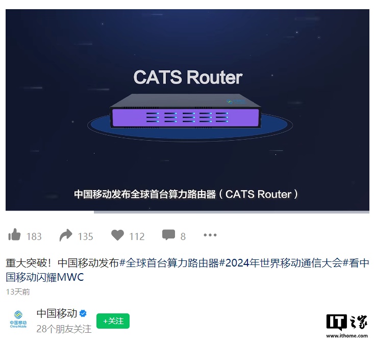 今年 3 月,中国移动宣布推出全球首台算力路由器 CATS Router,号称“历时两年研制”。