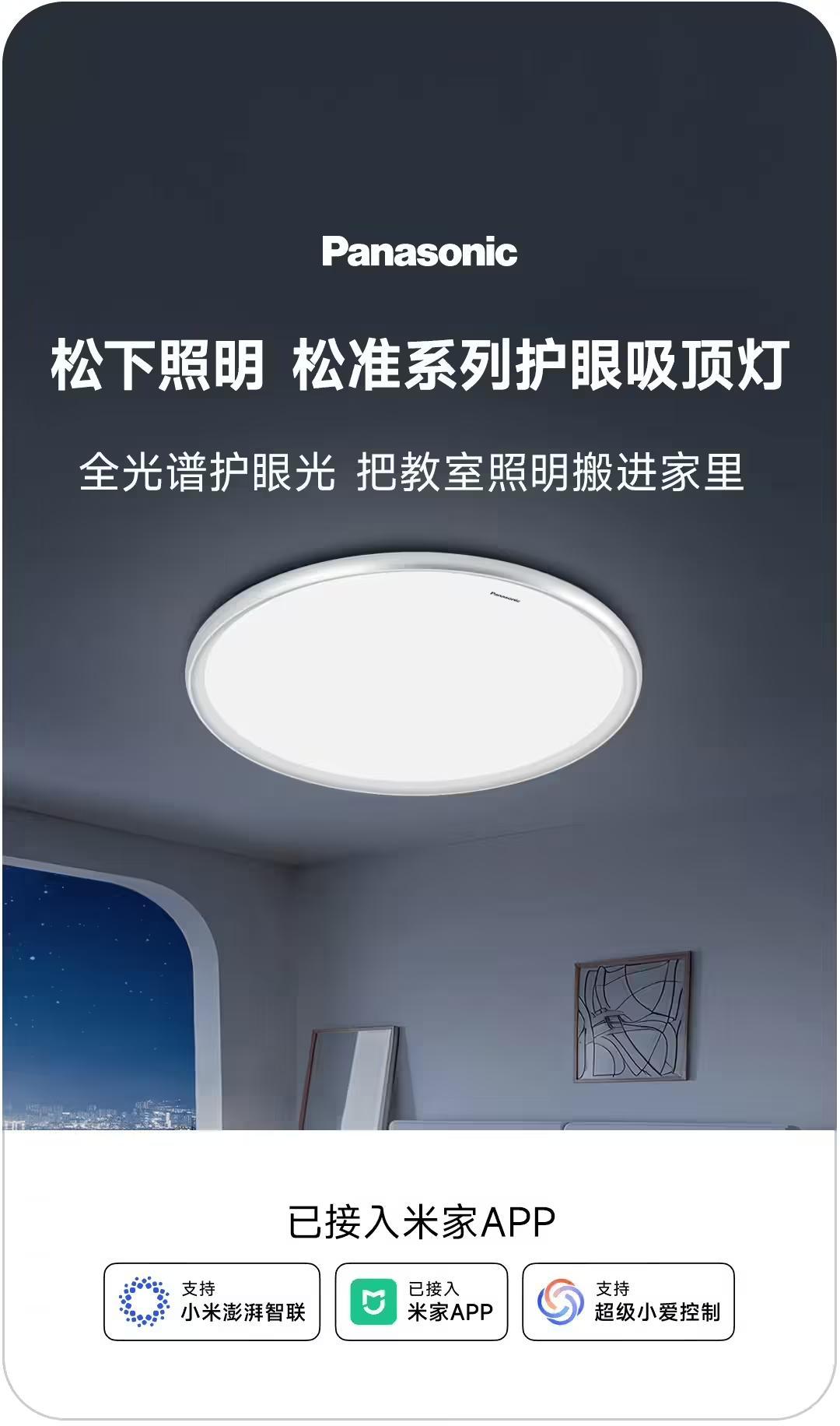 文章来源于互联网:凤凰网-松下松准系列护眼吸顶灯接入米家App,支持小米澎湃智联、超级小爱