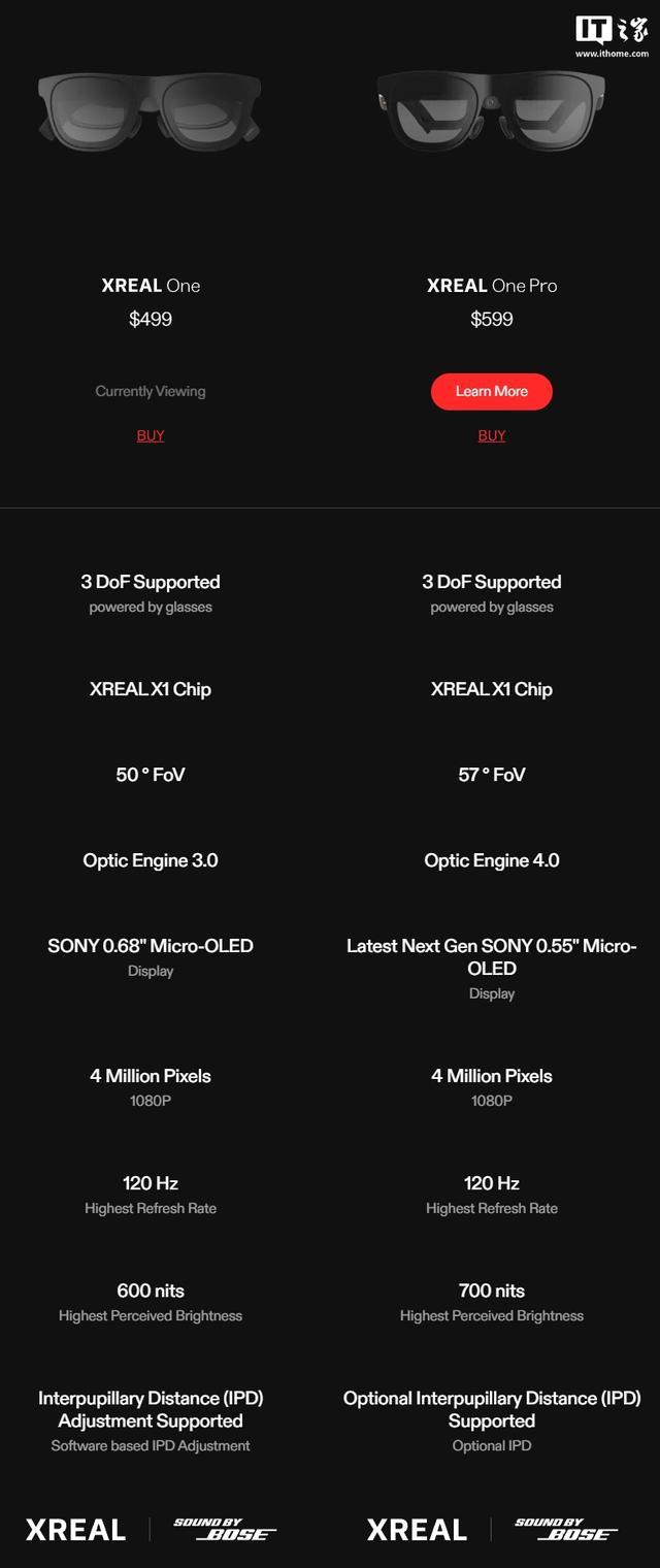 此外,XREAL One 系列配有 Bose 音频,重量 84g。