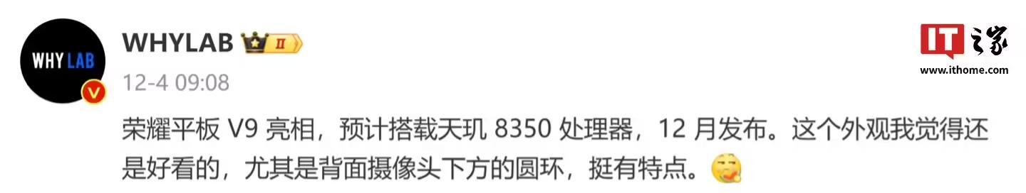 文章来源于互联网:凤凰网-荣耀平板V9官宣:后置圆形镜头模组,随GT手机一同发布