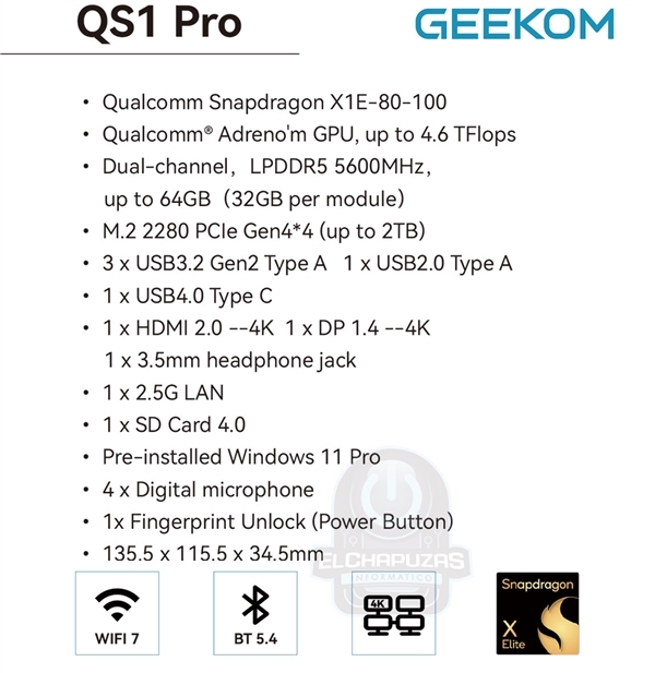 如果不考虑高通官方的开发套件,第一款真正的骁龙X Elite迷你机终于出现了,它就是积核(Geekom)的“QS1 Pro”。