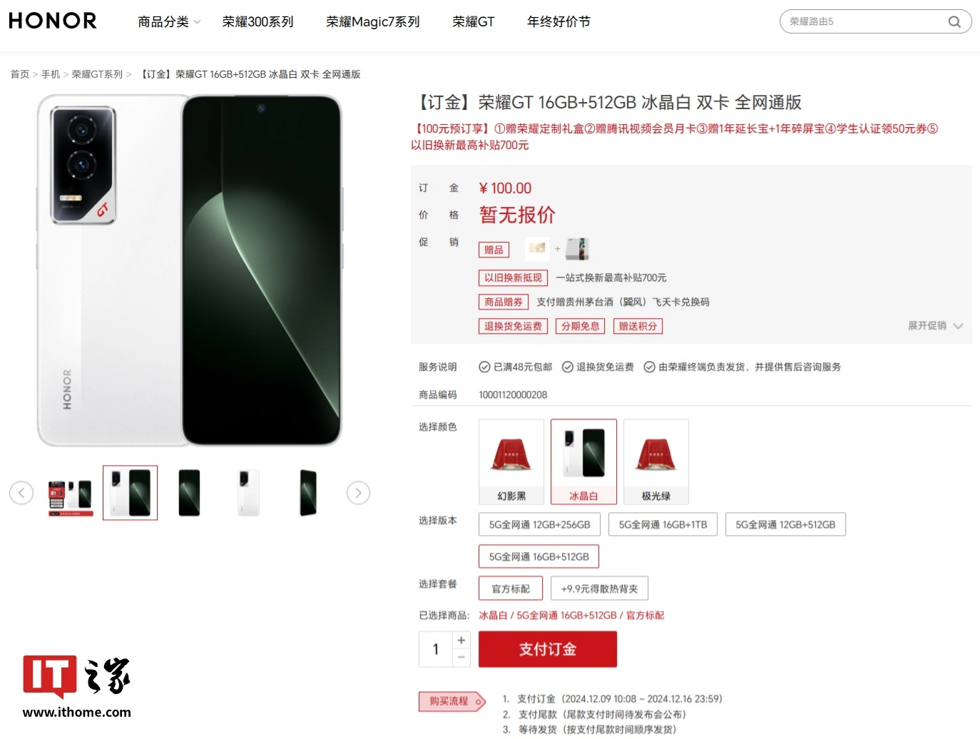 文章来源于互联网:IT之家-荣耀 GT 手机上线官网:3 种配色,最高提供 16GB+1TB 版本