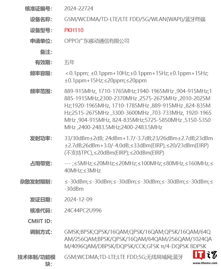 IT之家 12 月 9 日消息,型号为“PKH110”的 OPPO 新机今日通过工信部无线电核准认证,该机型号与此前通过认证的 OPPO Find X8 Ultra 手机的型号(PKH120)相近,但不支持卫星通信,结合网友讨论来看,预计为 Find X8 Ultra 标准版。