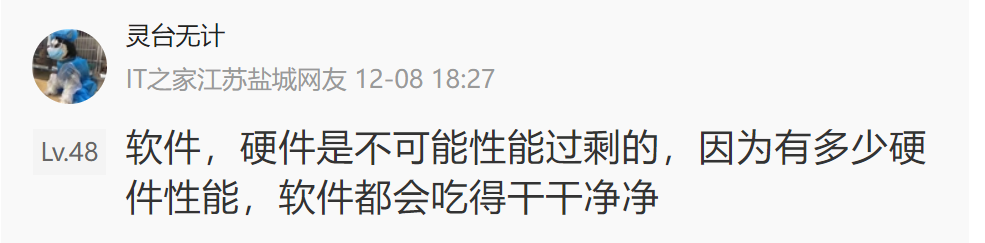 就像 @灵台无计 & nbsp; 所说的这般:软件,硬件是不可能性能过剩的,因为有多少硬件性能,软件都会吃得干干净净。