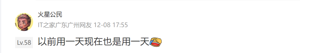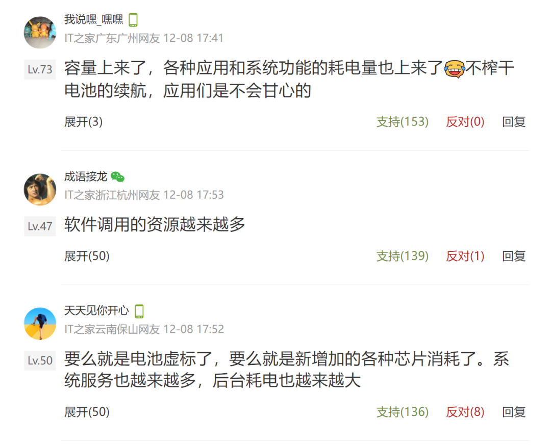只是,尽管电池都搞得大大的,但还是有网友表示续航不给力,比如在我们IT之家的评论区,就有用户称“三四年前 4000 左右电量跟现在五六千的电量,续航依旧差不多”