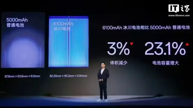 以一加 Ace 3 Pro 为例,据官方介绍,得益于 6% 的含硅量,电池容量较普通的 5000mAh 电池,增加 23.1%,增至 6100mAh。