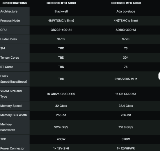 外媒wccftech整理了有关RTX 5080规格、价格、供货情况等方面的爆料情报。GeForce RTX 5080基于全新的Blackwell架构,将是RTX 50系列中仅次于RTX 5090性能表现的显卡,并且将取代现有的RTX 4080和RTX 4080 SUPER。Blackwell架构显卡采用全新的5纳米工艺,特别是N5B制程。