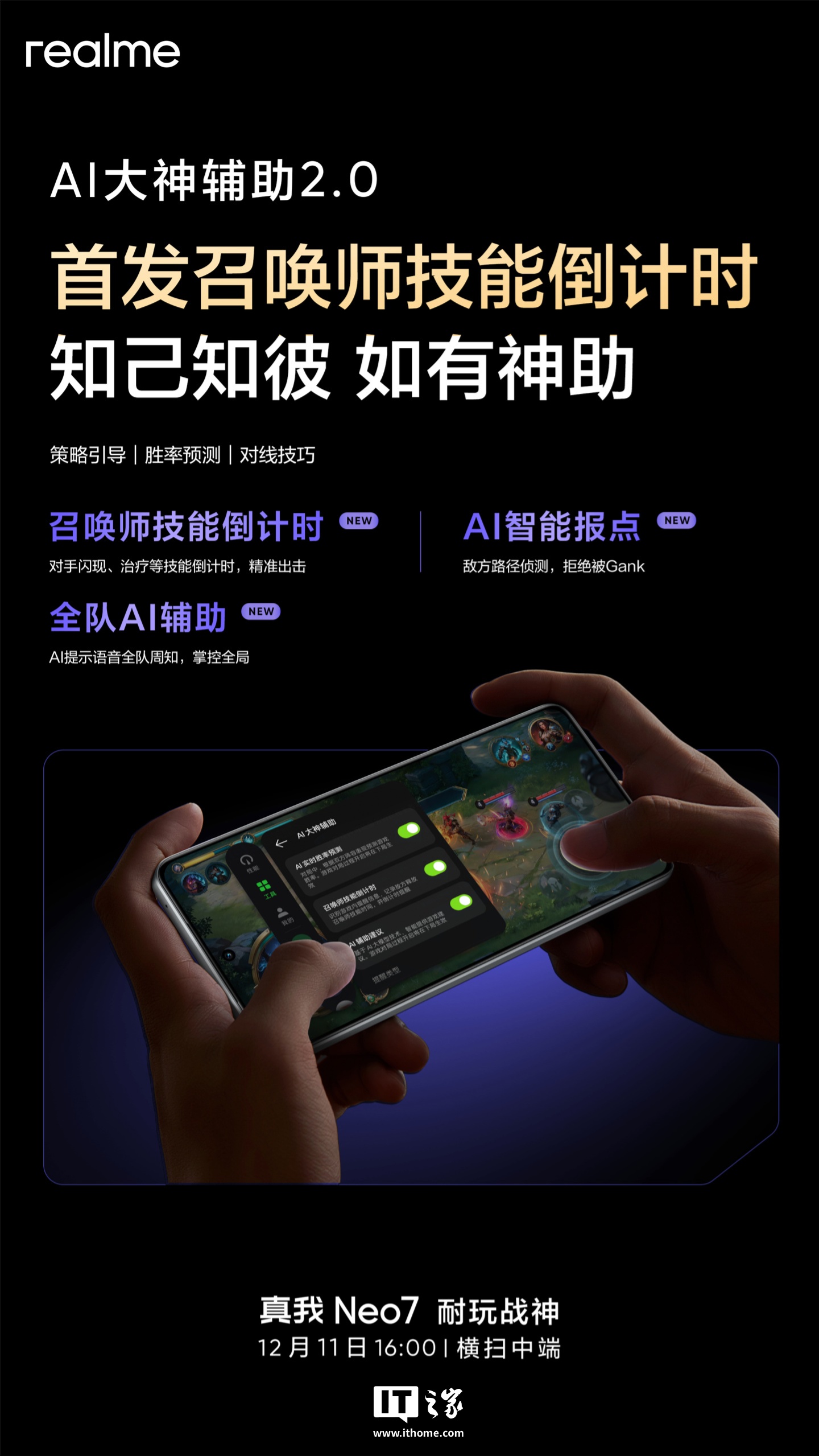 文章来源于互联网:IT之家-realme 真我 Neo7 手机支持“AI 大神辅助 2.0”,首发召唤师技能倒计时功能