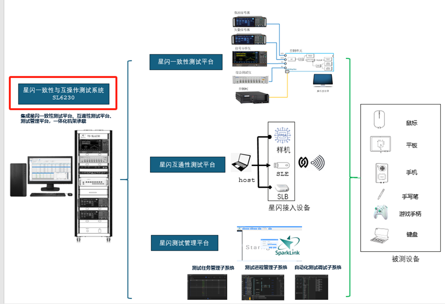 星闪一致性与互操作测试系统(SL6230)由星闪一致性测试平台、星闪互通性测试平台和星闪测试管理平台组成,可实现全自动测试,提升星闪产品测试效率,加快星闪产品上市商用: