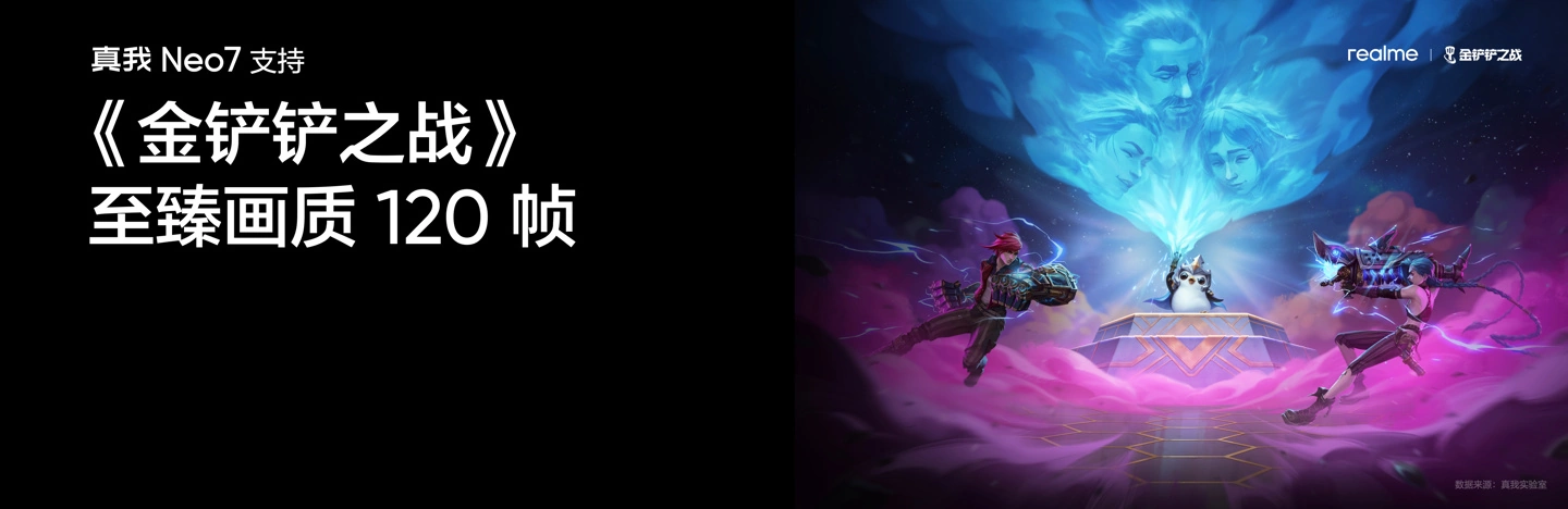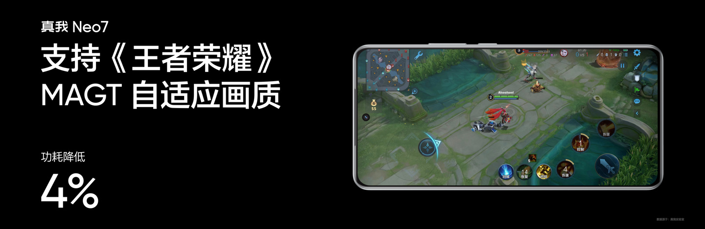 realme 真我 Neo7 手机同时支持“AI 大神辅助 2.0”,首发召唤师技能倒计时功能,提供对手闪现 / 治疗技能倒计时、AI 智能报点、全队 AI 辅助等能力;首次适配《热门自走棋手游》,提供金币精算师、AI 实时攻略等能力;适配《王者荣耀》MAGT 自适应画质,支持《金铲铲之战》至臻画质 + 120 帧。新机还搭载游戏专属内存 Pro,游戏 4D 振感,游戏滤镜,极客性能面板 2.0。