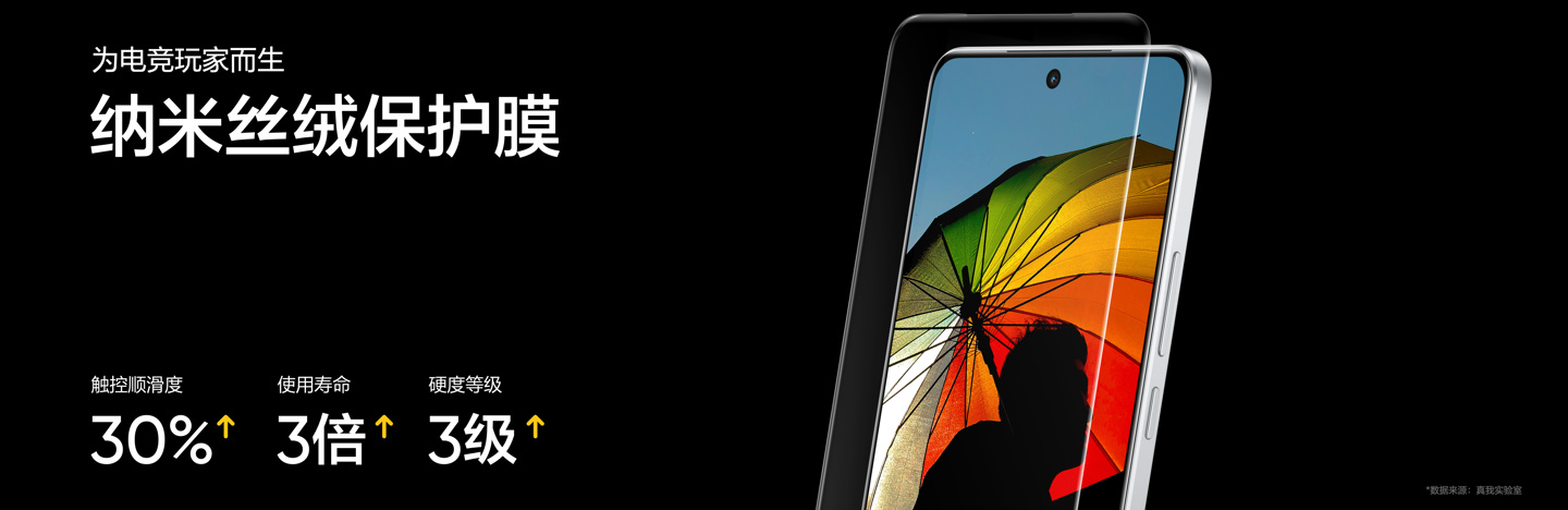 IT之家注意到,真我 Neo7 出厂配备“纳米丝绒电竞保护膜”,号称顺滑度提升 30%、使用寿命提升 3.3 倍、硬度等级提升 3 级;新机还拥有旗舰同款“晶铠玻璃”,宣称 5000 次钢丝绒耐刮测试、1.5 米跌落测试。