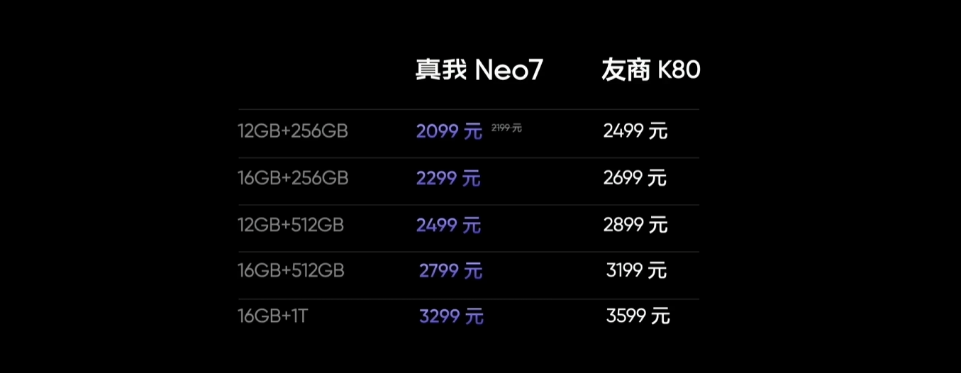 文章来源于互联网:IT之家-realme 真我 Neo7 手机发布:天玑 9300+ 处理器、7000mAh 电池,首发 2099 元起