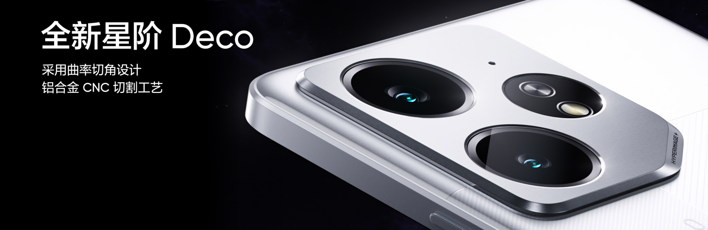 realme 真我 Neo7 手机配备金属星阶 Deco,辅以旗舰级精密加工工艺;采用“战神支点”设计,宣称横握竖握都一样舒适。手机背板使用微雕精刻铭纹,辅以光刻闪银工艺,提供陨石黑、潜航、星舰版三种配色。