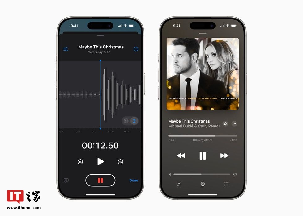 IT之家 12 月 12 日消息,苹果公司昨日(12 月 11 日)发布博文,宣布更新语音备忘录 App,为 iPhone 16 Pro 和 iPhone 16 Pro Max 带来分层录音功能,能更轻松地录制人声,并与已有的器乐音轨叠加,来创作音乐。